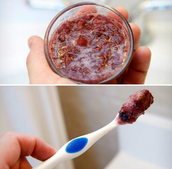 Земете свежа јагода и смачкајте ја со лажица. Измешајте ја со најдобрата морска сол што можете да ја најдете, ставете ја добиената паста на четка за заби и нежно масирајте ги забите неколку минути. Потоа целосно исплакнете ја усната празнина. За да ја заштитите глеѓта на забите, не правете го ова почесто од еднаш на секои две недели.
