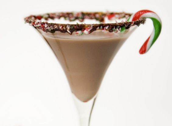 Врвот на една чаша за мартини украсете го со чоколаден сируп и трошки од искршено шеќерно бастунче. Алкохолните состојки и мразот ставете ги во шејкер и убаво протресете ги. Добиениот пијалак сипете го во чашата за мартини, а дополнително декорирајте со шеќерно бастунче.