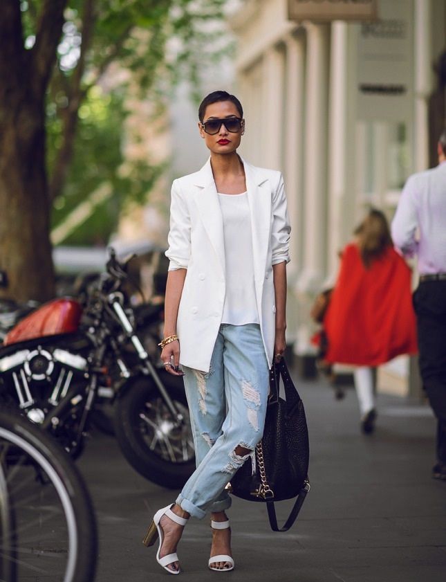 Да изгледате софистицирано и шик во класична бела блуза е апсолутно возможно со вистинскиот избор на останатите дневни парчиња. Вообичаените бели и црни комбинации секогаш даваат впечаток на стил и среденост, па затоа не откажувајте се од комбинацијата која на прв поглед можеби ви изгледа досадно. Бело на бело, како и црно одело со бела блуза е класика која нè следи со години, но интересен модел на сако и панталони можат да ја освежат и таа стара, досадна комбинација.
