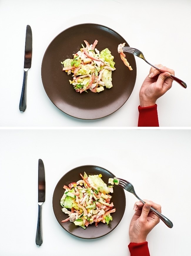 Совет: Користете помали чинии, бидејќи на нив ќе има помалку храна дури и кога целосно ќе ја наполните.