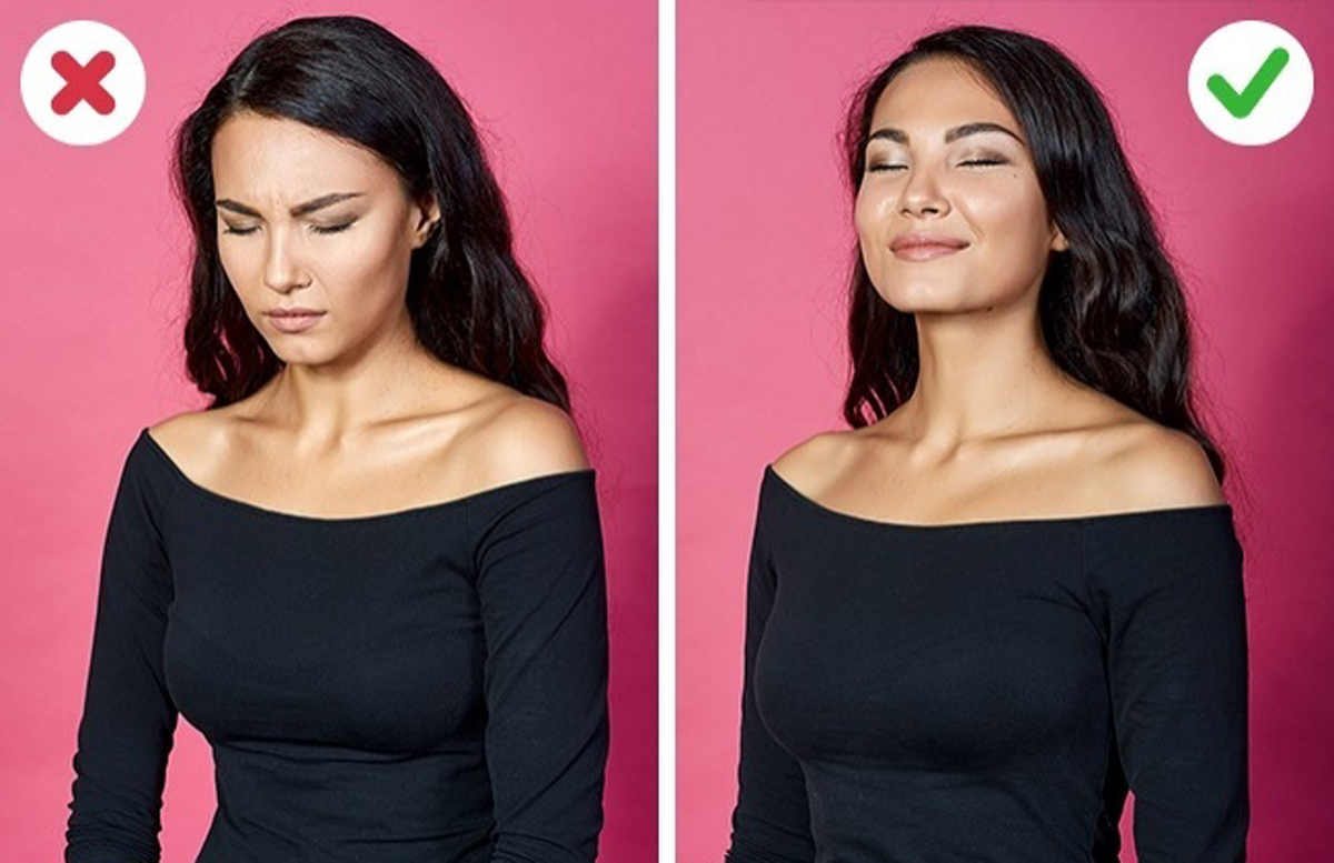 Ставете ја едната рака на челото, а другата на задниот дел од главата. Тоа ќе ви помогне да ја засилите циркулацијата на крвта во овие делови од главата и на тој начин ќе ја намалите тензијата. Без да ги тргнете рацете, вдишувајте и издишувајте рамномерно, со мали паузи помеѓу вдишувањето и издишувањето.