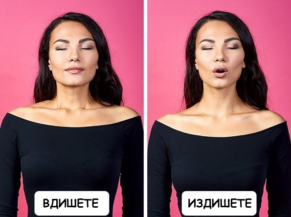 Вдишете длабоко и потоа издишете употребувајќи сила низ многу малку отворена уста. Додека издишувате, ослободувајте го воздухот во мали количини, така што ќе го туркате однатре кон надвор.