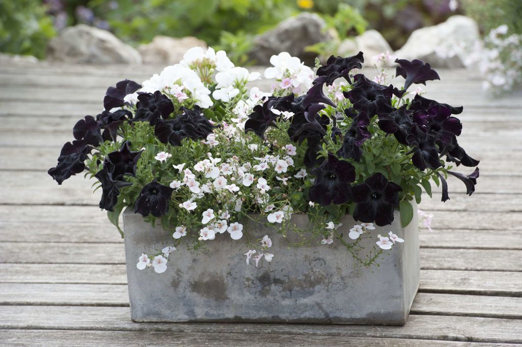 Црна петунија: Кадифено цвеќе што создава прекрасен контраст со разнобојни цвеќиња