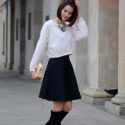 Белата маица со црно здолниште со А крој е одлична идеја, или црн фустан со бело палто, црни високи потпетици и чанта – ова се едноставни, софистицирани, безвременски изгледи и добитна комбинација во играта со трендовите.