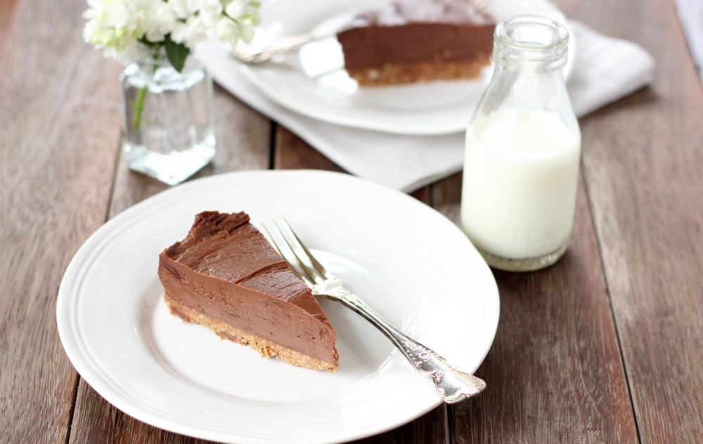 Смелете ги бисквитите во еден сад, додајте путер и една лажица Нутела и мешајте со миксер сè додека не добиете мека смеса. Додајте 75 грама исечкан лешник и мешајте сè додека не добиете смеса која наликува на мокар песок. Сипете ја добиената смеса во кружен калап и притиснете ја со прстите така што ќе ја израмните. Оставете ја да се олади во фрижидер.