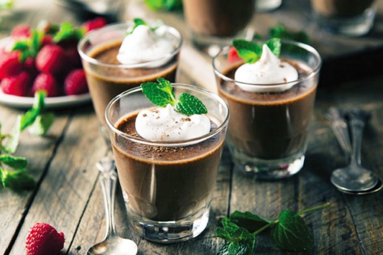 Во сад на пареа растопете ги чоколадото и путерот, а потоа тргнете ги од шпоретот. Во друг сад изматете ја слатката павлака додека да згусне, но не премногу (издвојте малку за декорација).