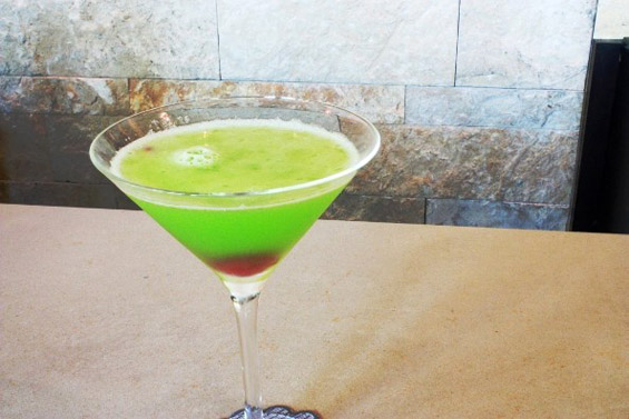 За да се добие одличен контраст на боите, светло зелениот коктел се служи во чаша во која на дното има мараскино вишна.