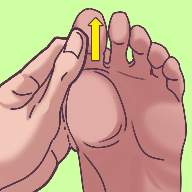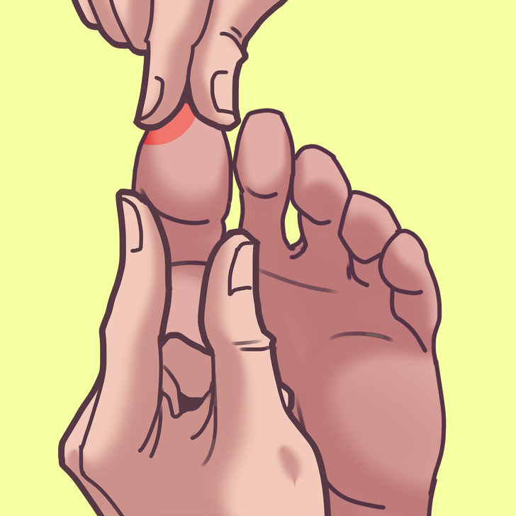 Може да започнете од најгорниот дел од палецот. Масирајте ја оваа точка со кружни движења, а потоа малку притиснете и почекајте неколку секунди.