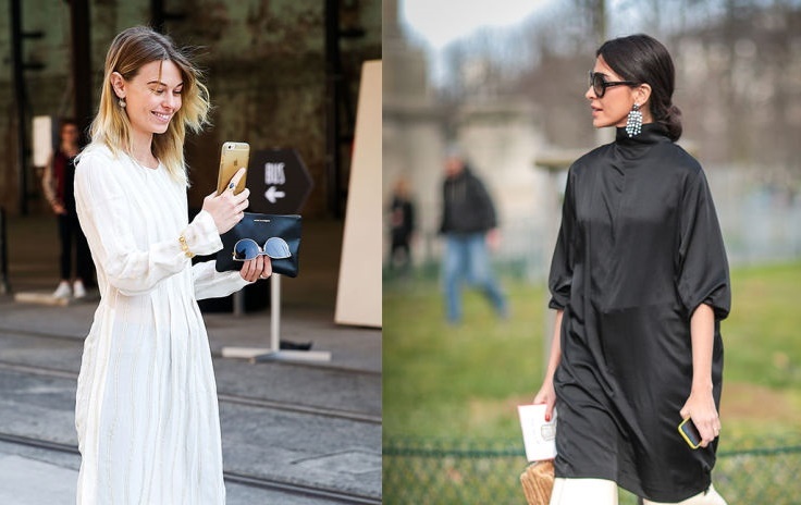 4. Затворен, црн, свилен фустан асоцира на софистицираност. Немојте да го комбинирате со фармерки, туку изберете пантолони и тоа, широки. Кај оваа комбинација бидете внимателни и добро проценете дали тој волумен ви прилега. Доколку не, секогаш можете да облечете потесни пантолони и да добиете класична комбинација со подолга туника.