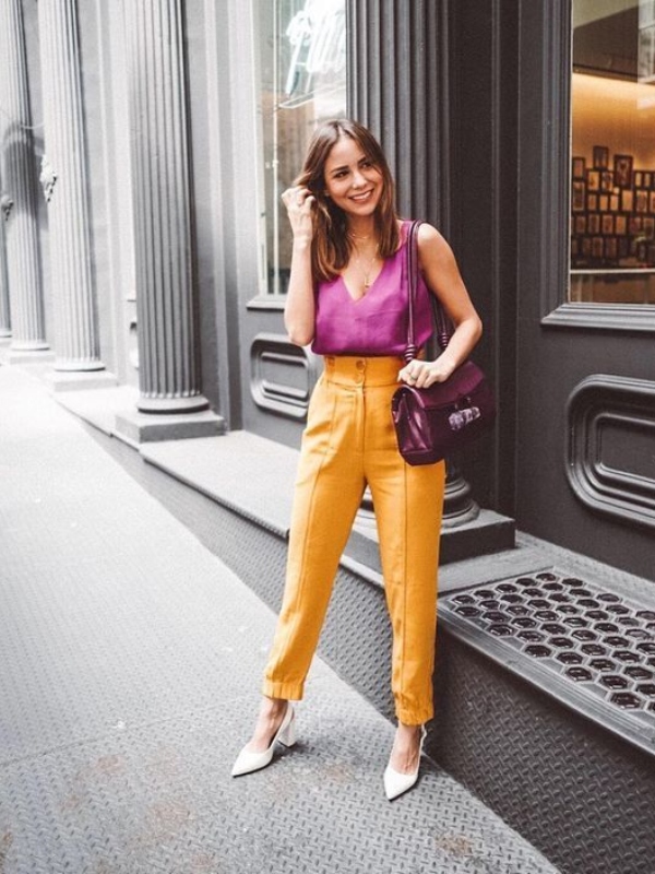 Носењето смели летни тонови е можно со речиси сите комбинации на облека. Сите опуштени, спортски и секојдневни ситуации, освен елегантните пригоди, се совршени за впечатливи бои. Вашиот избор може да биде комбинација на неутрална маица и впечатливи панталони или еднобојна комбинација од глава до пети. Дајте им приоритет на посветлите бои и на материјалите што јасно ја покажуваат вашата фигура. Ова лето, најголем хит се панталоните со висок струк. Погледнете ги фотографиите во продолжение за да добиете инспирација за вашата следна комбинација.