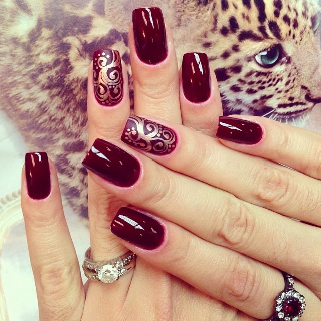 Темните бои одлично стојат и на долги и на кратки нокти и совршено ги прекриваат недостатоците. Спектарот на вино боја е широк и ги опфаќа и најзагасените и најбогатите нијанси со интензивен сјај или во мат варијанта. Во продолжение ви прелагаме неколку инспирации за маникир во боја на вино.