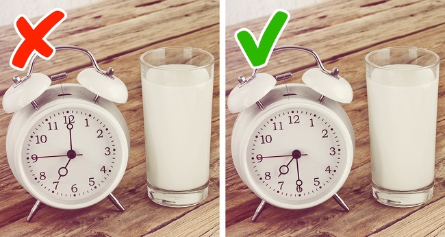 Научниците не препорачуваат да се пие млеко наутро бидејќи го стимулира производството на киселини во стомакот. Исто така може да ви предизвика и акни ако имате проблематична кожа.