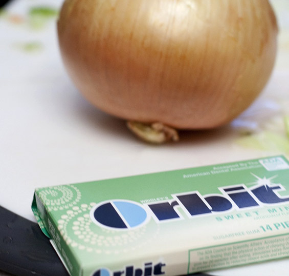 najednostaven trik, koj kaj mene skoro sekogas raboti – napolnete ja ustata so voda dodeka secete. vodata vo ustata go vrzuva visokot voda vo ovoj del od teloto, pa nema da vi solzat ocite.