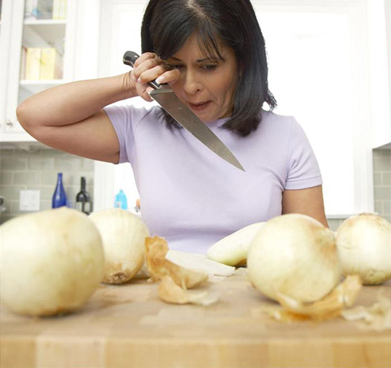Користете остар нож – Со остар нож и подобрување на вашата техника на сечење, помалку ќе го гмечите кромидот и со тоа помалку ќе се испуштаат материите кои предизвикуваат иритација. Дополнително, побрзо ќе завршите работа, па непријатното чувство пократко ќе трае.
