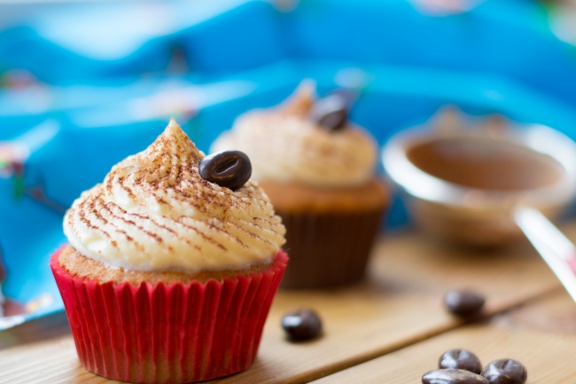 За филот, изматете го маскарпонето, а во друг сад комбинирајте ја шлаг пената со шеќерот во прав и ванилата. Измешајте добро. Потоа внимателно спојте ги двете смеси и откако ќе ги измешате, нанесете ги на тортичките. Декорирајте со какаото во прав.