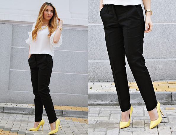 1. Освежете го својот класичен работен стил со трошка боја или со впечатливи аксесоари во боја на злато.