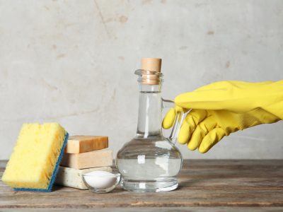 - Најпрво земете марамче или крпа за да ја впиете маснотијата од самото место, а потоа истурете сода бикарбона.