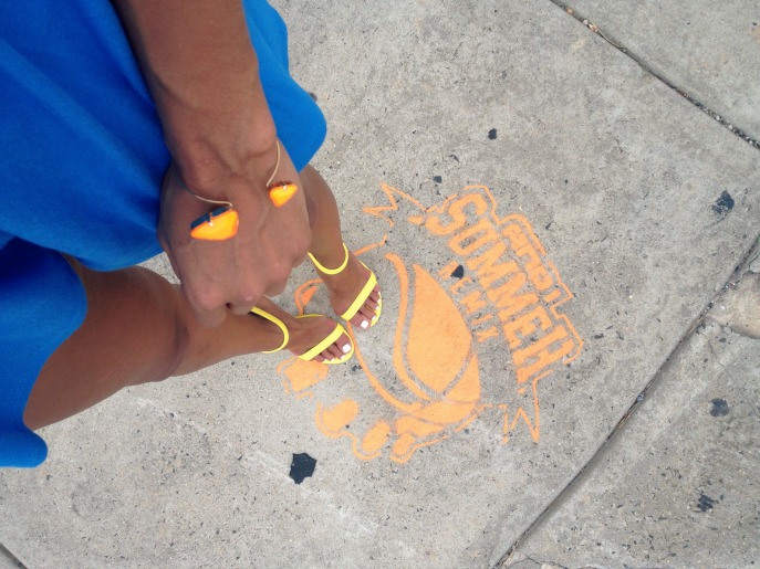 Без оглед на висината на штиклата, црните сандали секогаш спаѓаат во „ит“ аксесоари, односно тие ќе се носат и ова лето. За да ја разбиете монотонијата во својот изглед, ве советуваме да изберете лак во некоја силна, неонска боја која претставува тотална спротивност на црните сандали и сведената комбинација.