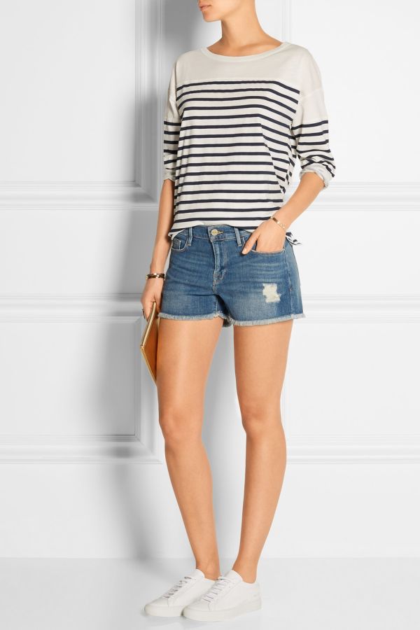 Ние сме сигурни дека не постои дама која не поседува барем еден пар тексас шорцеви во својот шкаф. Тие се едни од најпрактичните и најомилените парчиња облека на жените. Совршено одговараат со маица на линии и бели патики.