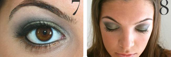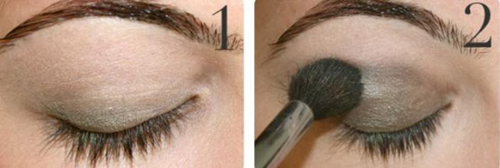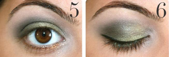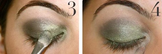 1. На надворешниот дел од капакот на очите, нанесете металик зелено моливче и размачкајте го со прстите.