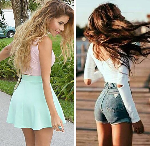 Маичките со гол стомак одлично го нагласува струкот, а тексас шорцевите убаво ги дефинираат сите посакувани делови. Скејтерските здолништа и здолништата кои стануваат пошироки на крајот се многу модерни денес и несомнено ќе ги привлечат туѓите погледи, благодарение на нивната должина и форма. Тие визуелно го зголемуваат задникот и помагаат да се постигне најпосакуваната форма на телото на песочен часовник.