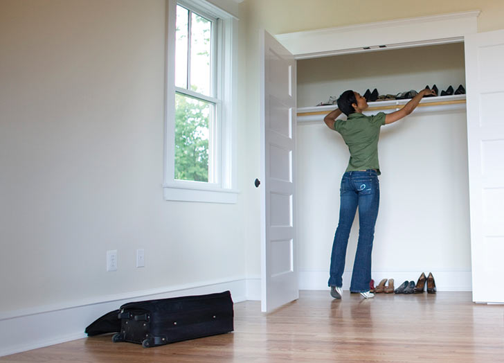 Треба добро да се осмисли просторот, така што секој сантиметар ќе биде најефикасно искористен. Користете закачалки за чантите, полици за чевлите, тешко достапните полици и делови употребете ги за складирање на патни торби и други предмети и облека која многу ретко ја користите (капути, шешири, опрема за скијање…). Најдобро би било да ги извадите сите нешта од плакарот, добро да погледнете во празниот простор и да смислите на кој начин ќе ги организирате работите во него.