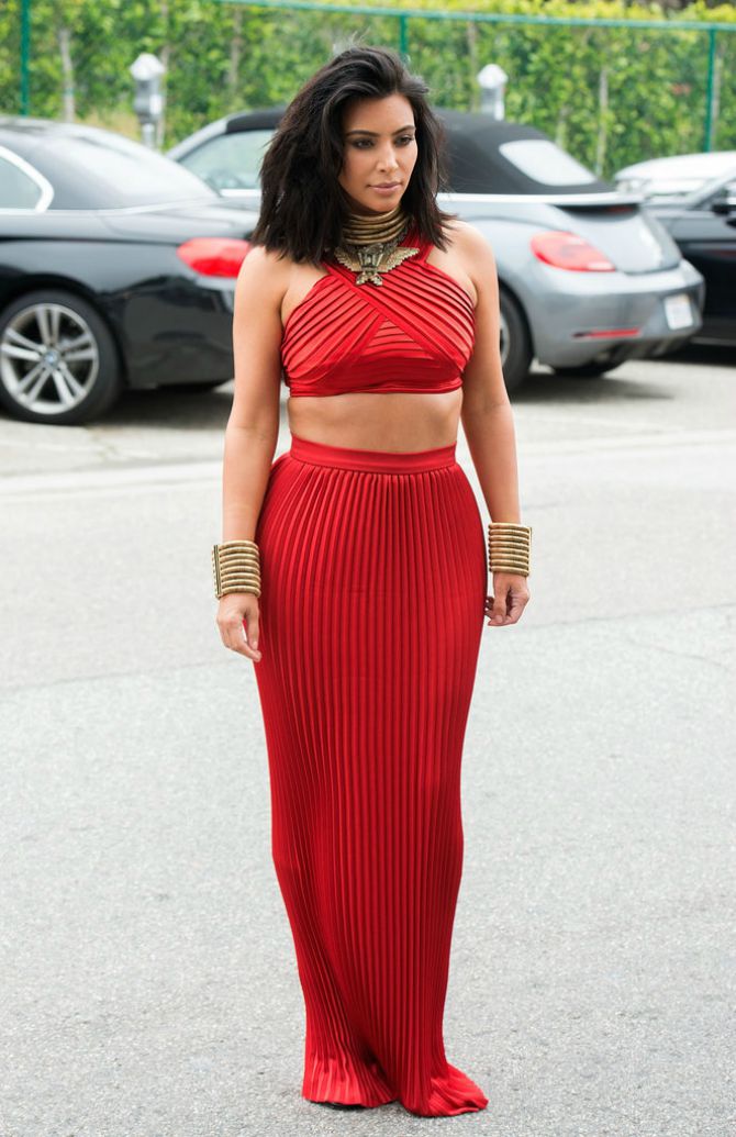 Иако нема димензии на модел, Ким не се плаши да носи кроп-топ, a може да видиме и зошто. Суптилното откривање на стомакот дава доволна количина секси изглед кога е комбинирано со секојдневно праче со висок струк.
