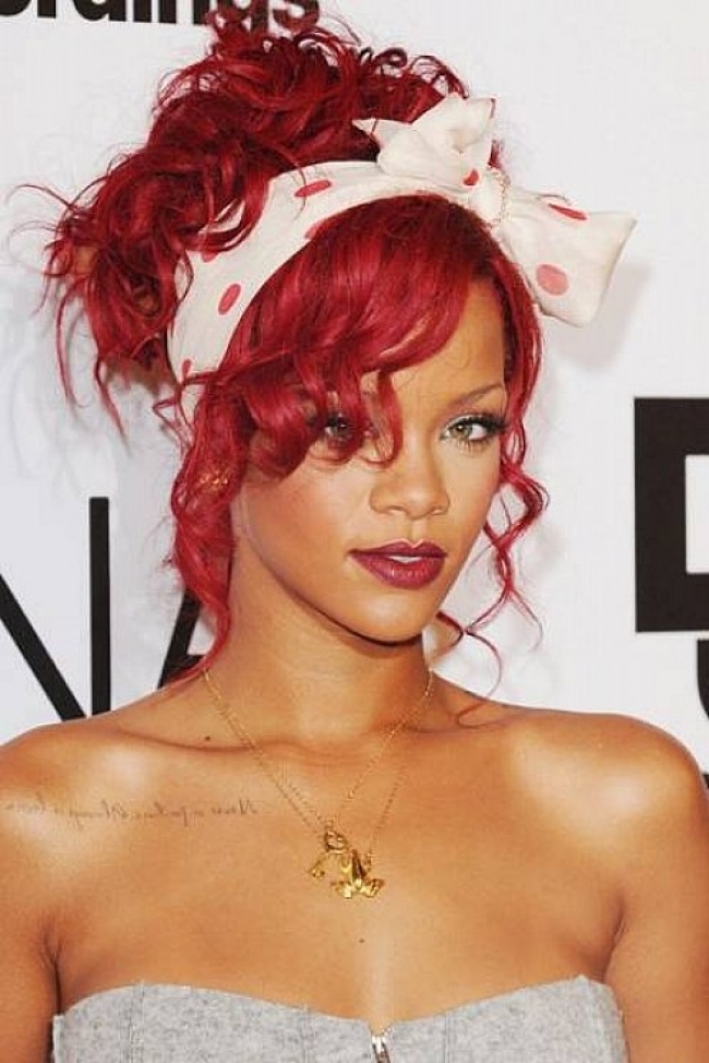 Ријана е личност која секоја боја на коса за која се одлучувала ѝ прилегала добро, па зошто би било поразлично кога е во прашање силно црвената. Кога станува збор за потемниот тен, слободно можете да си играте со различни нијанси на црвена, под услов да не избирате златни тонови кои исклучително подобро им прилегаат на девојките со светол тен.