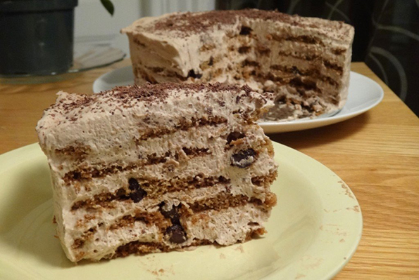 - Врз кремот ставете уште еден слој бисквити и повторно покријте со крем.
