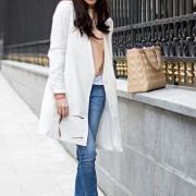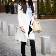 Иако кога ќе залади времето и есента е веќе длабоко пристигната, сите веднаш се фаќаме за темните облеки и обувки, тоа не е правило што го наметнуваат модните трендови. Напротив, многу е подобро да му се спротивставите на тмурното време со посвежи бои, а еден начин да го постигнете тоа е да ја употребите белата како боја за вашиот капут. Белата боја потсеќа на снег и на зима и е некако романтична и ведра кога се носи во овој период од годината.
