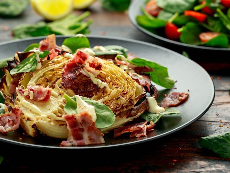 4. Посипете ја печената зелка со пармезан, со оцет или со сок од лимон, со свежи билки и со ореви.