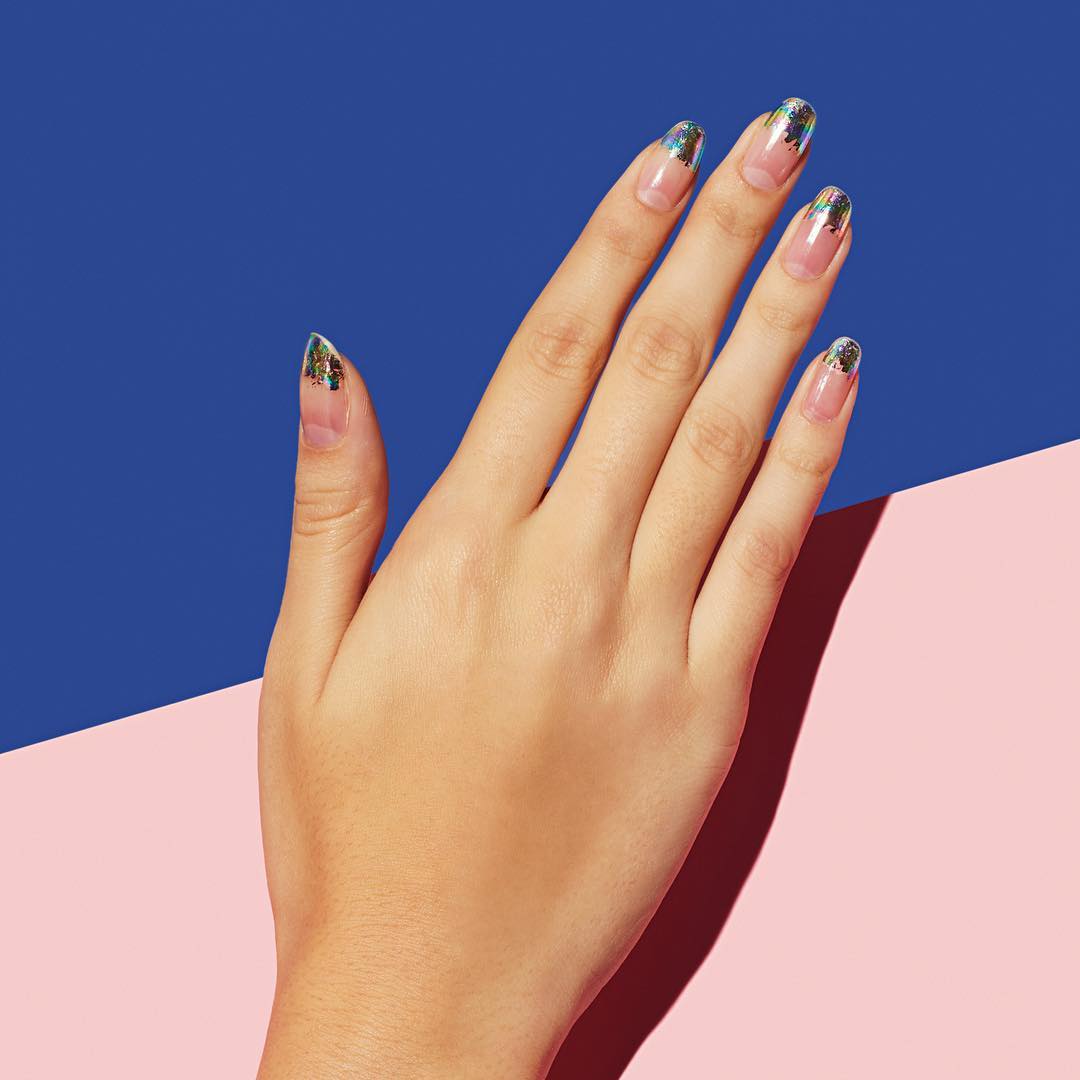 Наместо врвот на вашите нокти да биде бел, обидете се да го украсите со фолија што се нанесува на ноктите и остава разнобојни траги. Консултирајте се со вашиот козметичар за повеќе информации.