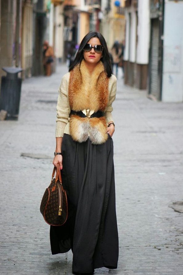 Исто како со кратките фустани, возможно е и макси фустаните да ги претворите во парчиња за зима. Добро изгледаат со тесна блуза или џемпер врз фустанот, а потоа врзете ја едната страна така што ќе добиете асиметрична должина која нема да изгледа толку „тешко“ на нозете поради хулахопките. Финиширајте го изгледот со парче накит кое привлекува внимание.