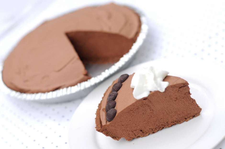 - Ставете ја смесата врз купената кора, а потоа користете шпатула или нож за рамномерно распределување. Оставете 1 час во фрижидер, а потоа украсете со шлаг и чоколадни струготини.