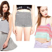 Пругите не мора да бидат двобојни. Моментално многу се тренди пругите во различни бои, без разлика дали се работи за маица, сукња или фустан.
