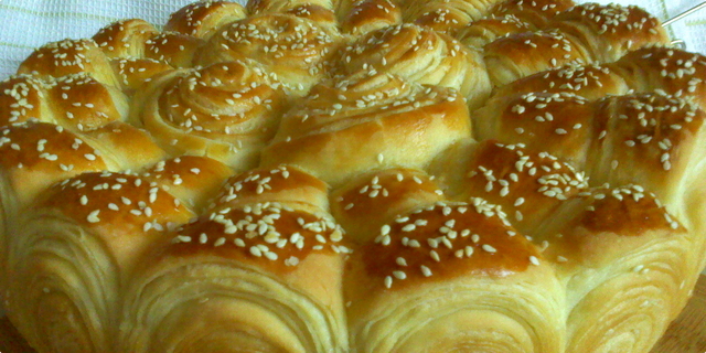 Samo edna zabeleska, pogacata se premackuva so zolcka i se posipuva so susam pred da se stavi da se pece, Dokolku toa posle se napravi, kako vo receptot, testoto ke spadne.