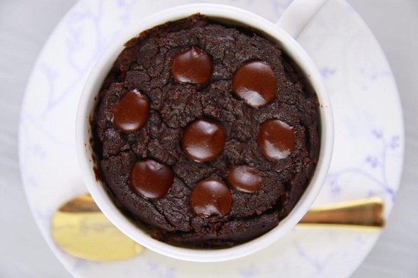 - Печете го колачот во микробранова печка 60 секунди. Јадете го директно од чашата или ставете го на чинија.