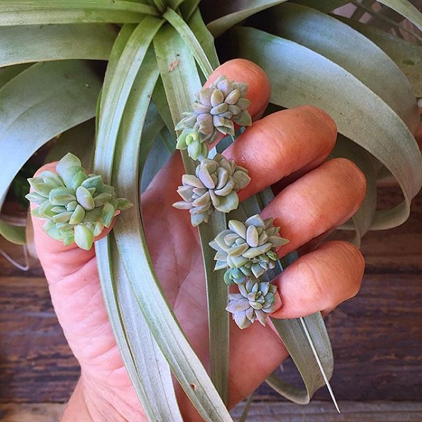 Бидејќи веќе зад себе има прекрасни накити направени од сукуленти, за Борг креативниот растителен свет не е непознат. Но, без сомнение предизвика шок на Инстаграм кога започна да објавува фотографии од мали сукуленти поставени на нејзините нокти. Иако ова делува како непрактичен дизајн, сепак, кога станува збор за нешто ново и иновативно, заслужува внимание.