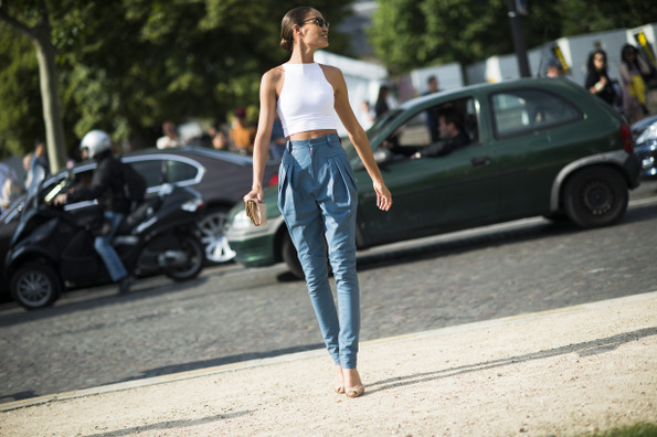 Ако не сакате да го покажете вашиот стомак, а сакате барем малку кожа, спојте го кроп топот со пантолони со висок струк. Ова ќе ви биде полн погодок.