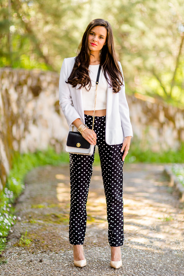 Блејзер комбиниран со кроп топ е комбинација која може да биде соодветна за обичен ручек со пријателките, вечерни излегувања, па ако е добро комбиниран, дури и за на работното место.