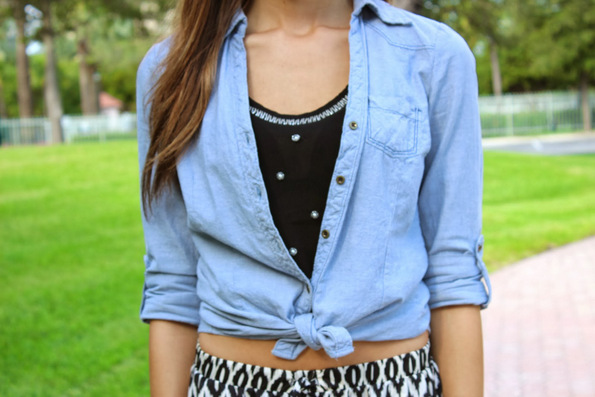 Ако сте отворени кон експериментирање или пак не ви се даваат пари за тренд кој за неколку сезони ќе избледи од модниот свет, тогаш земете ја омилената кошула/блуза и претворете ја во кроп топ така што ќе ја врзете/исечете.