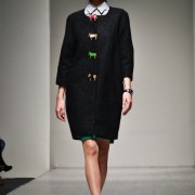 Строгата текстура преплетена со материјали како твид и сомот во бебешко сина боја направи оваа колекција да биде доволно интересна и за гледање, но и за носење. Најкарактеристичен беше кроп топот од бели коцки кои се врзуваше на грбот со голема панделка. Исто така, Ѓоргиева меѓу најважните трендови за есента ни ги претставува темните есенски цветови во црно-бела и црвена боја. А, токите и монистрите ги прекриваа проѕирните кошули давајќи им доза умерена елеганција и истакнувајќи ја убавината на женското тело.