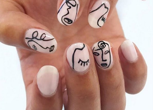 Тенките црни линии на еднобојна неутрална основа ќе ви овозможат да можете да ги комбинирате вашите нокти со сите парчиња облека во вашиот шкаф.
