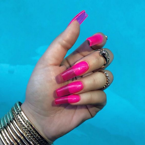 Ако сакате повеќе бои, одлично ќе изгледа врз секој транспарентен нокот да нанесете неонски лак за нокти.
