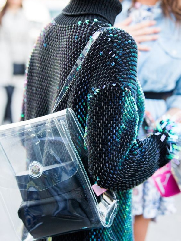 Овие чанти се комбинираат со широк спектар на облека, од фармерки до романтични летни фустани и тесни мини здолништа. Но, никогаш не заборавајте дека тие се проѕирни.