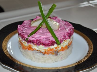 За да направите венец, најпрво ќе ви треба голем послужавник, а најдобро е да изберете даска за сечење во кружен облик. Уметнички распоредете ги намирниците во круг и украсете ги рабовите со зелени гранчиња нане или рузмарин.
