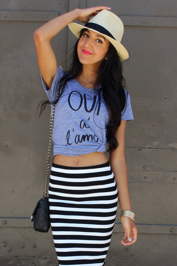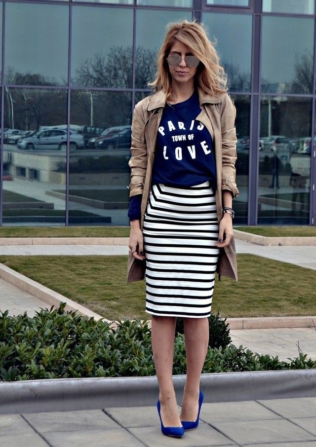 Славното „молив“ здолниште е неизоставно парче во последните неколку години. Тоа е здолниште кое ја следи линијата на телото, а во комбинација со штикли изгледа навистина елегантно. Но, доколку не сакате да постигнете толку свечен и сериозен изглед, елегантната блуза заменете ја со памучна блуза со натпис. Ќе изгледа многу забавно и кул, а пред сè – тренди.