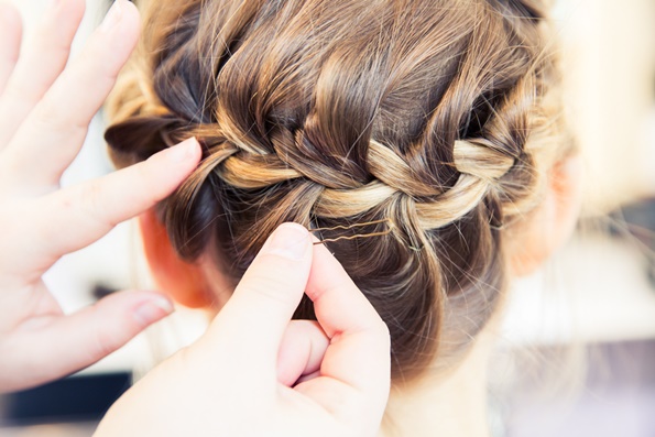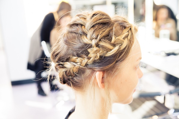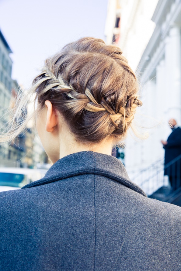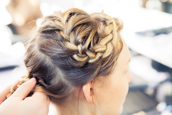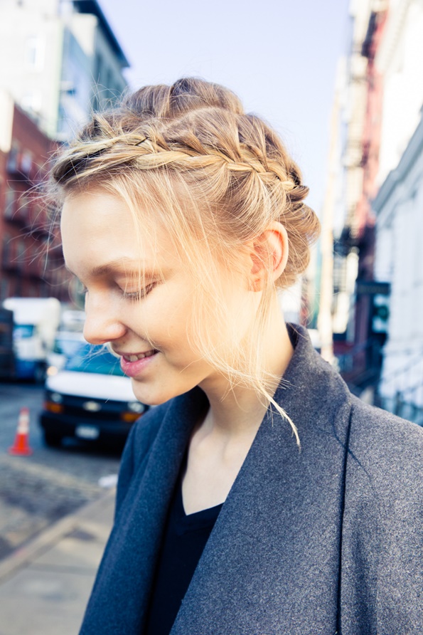 Правењето на оваа фризура ќе го започнете со тоа што прво ќе направите крупни локни со помош на фигаро, а потоа секоја локна ќе ја попрскате со спреј за зајакнување и обликување на косата. Кога ќе завршите со ова, најнапред издвојте еден прамен коса од средина на главата, и од него направете плетенка која оди накосо, а потоа исплетената коса префрлете ја преку главата, на тој начин што ќе направите круна.
