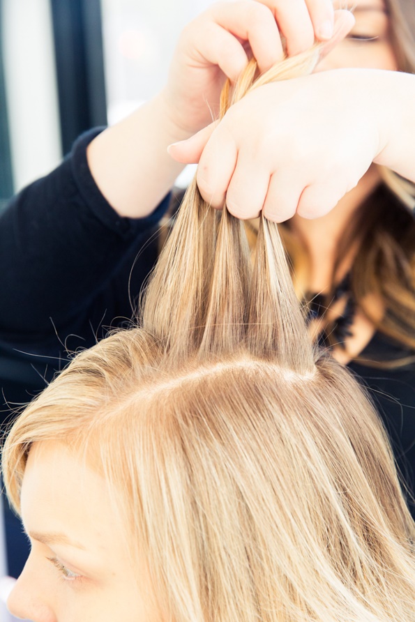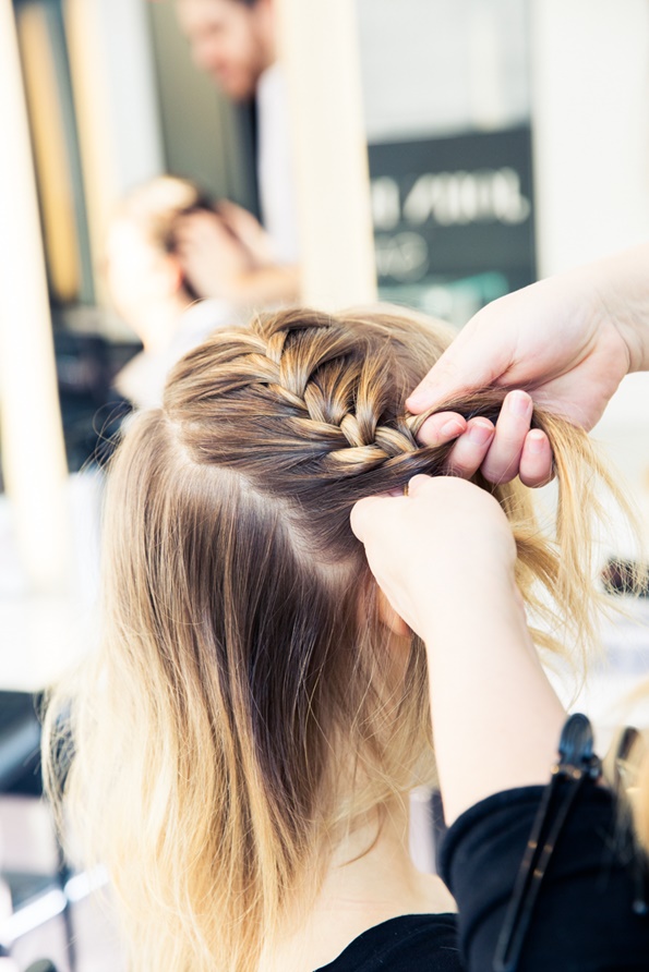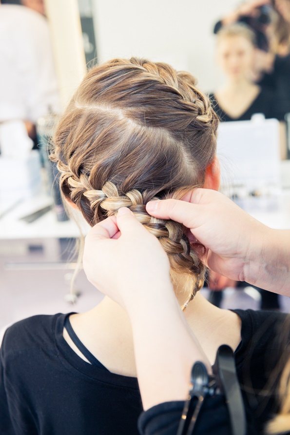 Откако ќе завршите со тоа, косата понатаму поделете ја на уште два дела, кои ќе ги исплетете во француска плетенка, но на тој начин што секоја плетенка ќе се надоврзува на претходната. Плетенките зацврстете ги со шноли и водете сметка тие да бидат добро фиксирани, за да не се растурат.