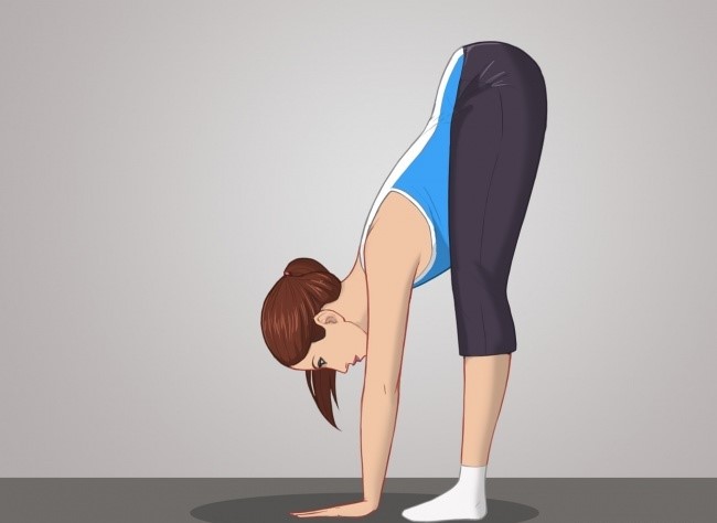 Можете да го допрете подот со врвовите на прстите и со малку свиткани колена. Но вежбата не ви предизвикува неудобност.